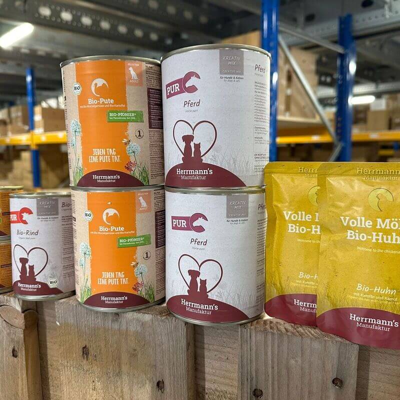 Innerhalb des Lagers gibt es einen separaten Bereich für trockene und klimatisierte Lagerung. Um Bio-Lebensmittel lagern zu dürfen, muss ein Lager zertifiziert sein und besondere Anforderungen erfüllen. Für viele Unternehmen ist es nicht rentabel, die Lagerhaltung für Tiernahrung selbst durchzuführen. Daher ist es bei Finest Petfoods möglich, diesen Standort zu nutzen und manchmal sogar direkt von dort zu versenden. Das nennen wir Dropshipping.